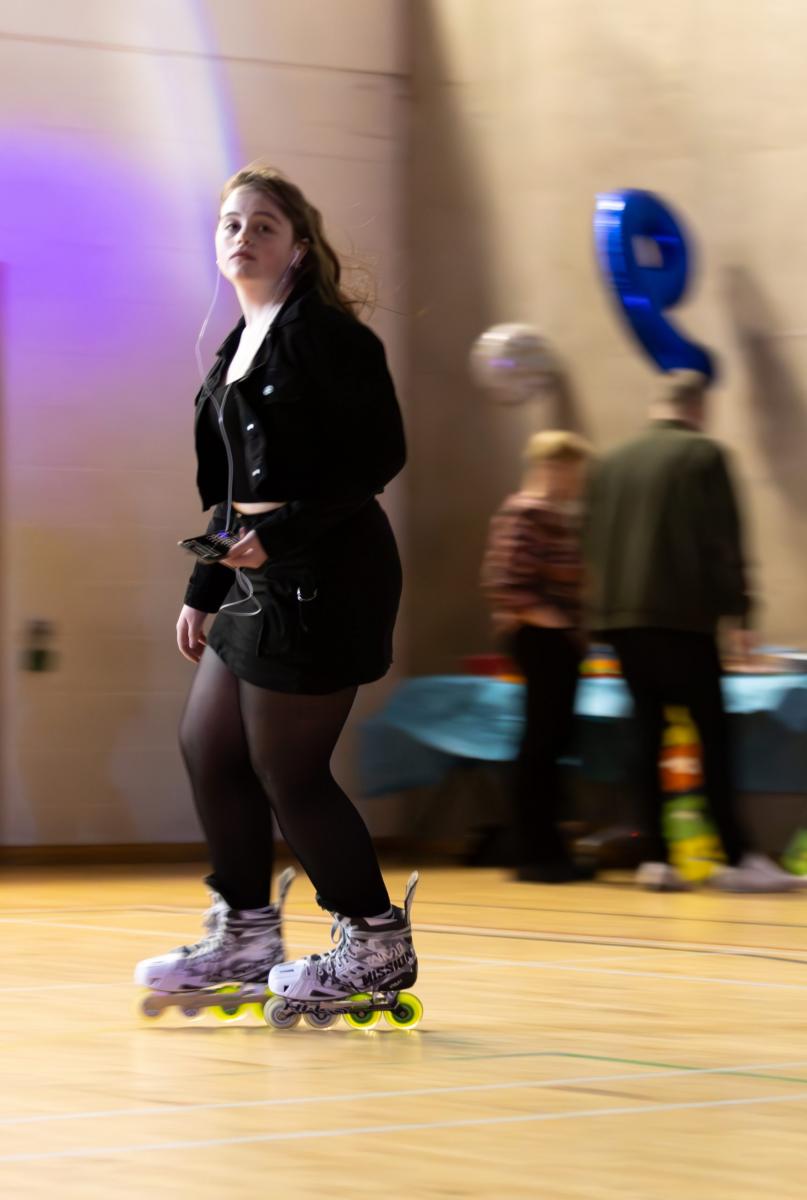 Enter through the main entrance, Go through the door on the right hand side of the reception and follow the corridor to the bottom where the Roller disco is in the sports hall.