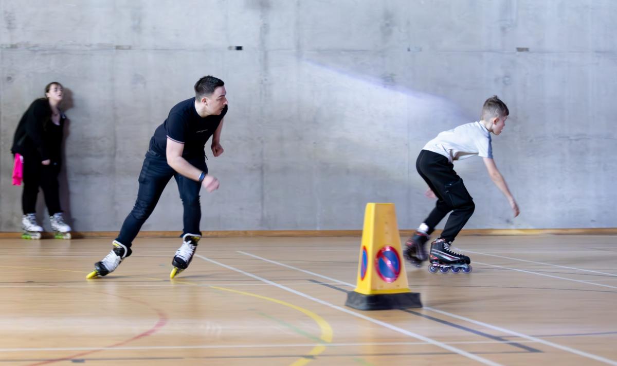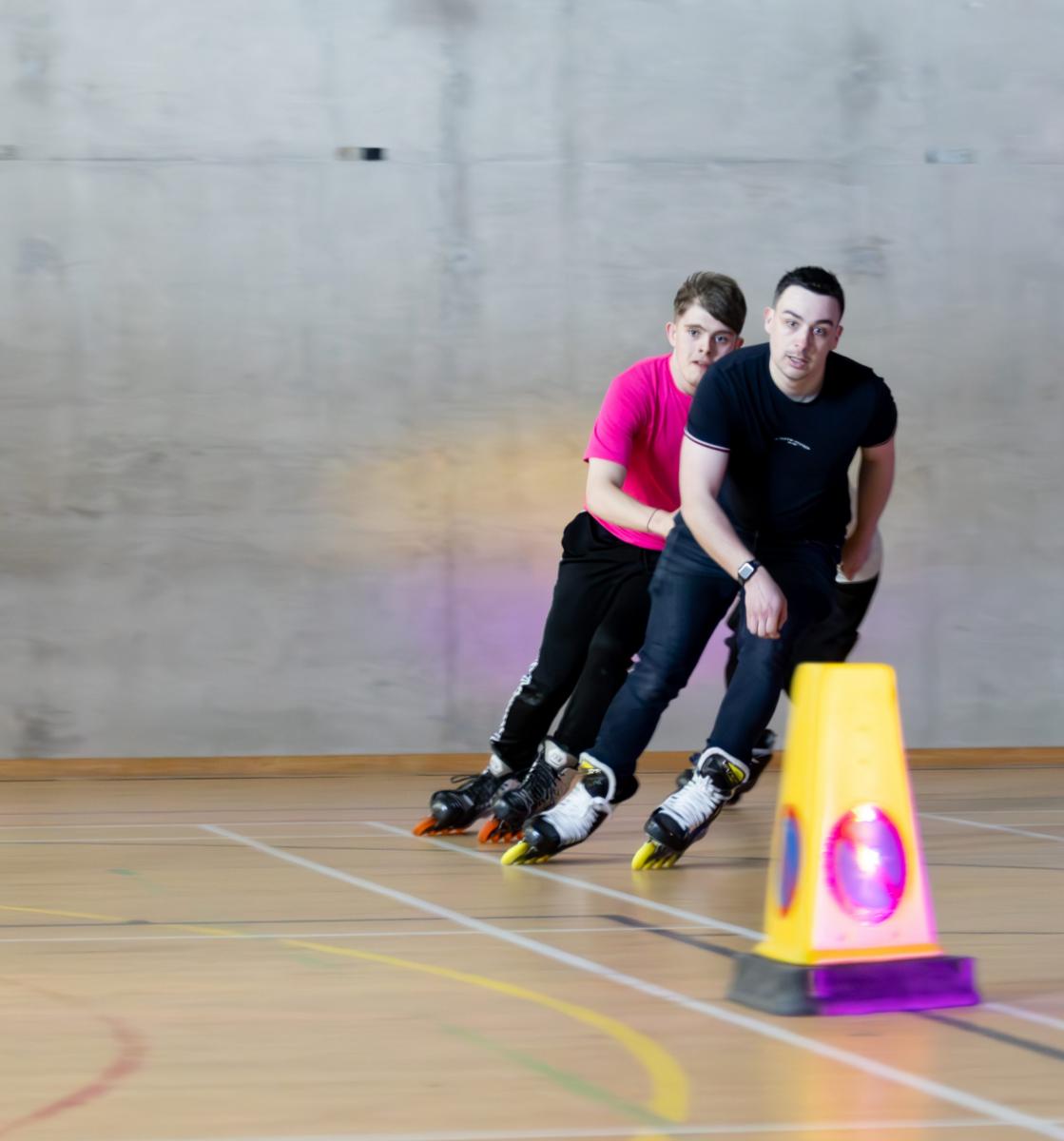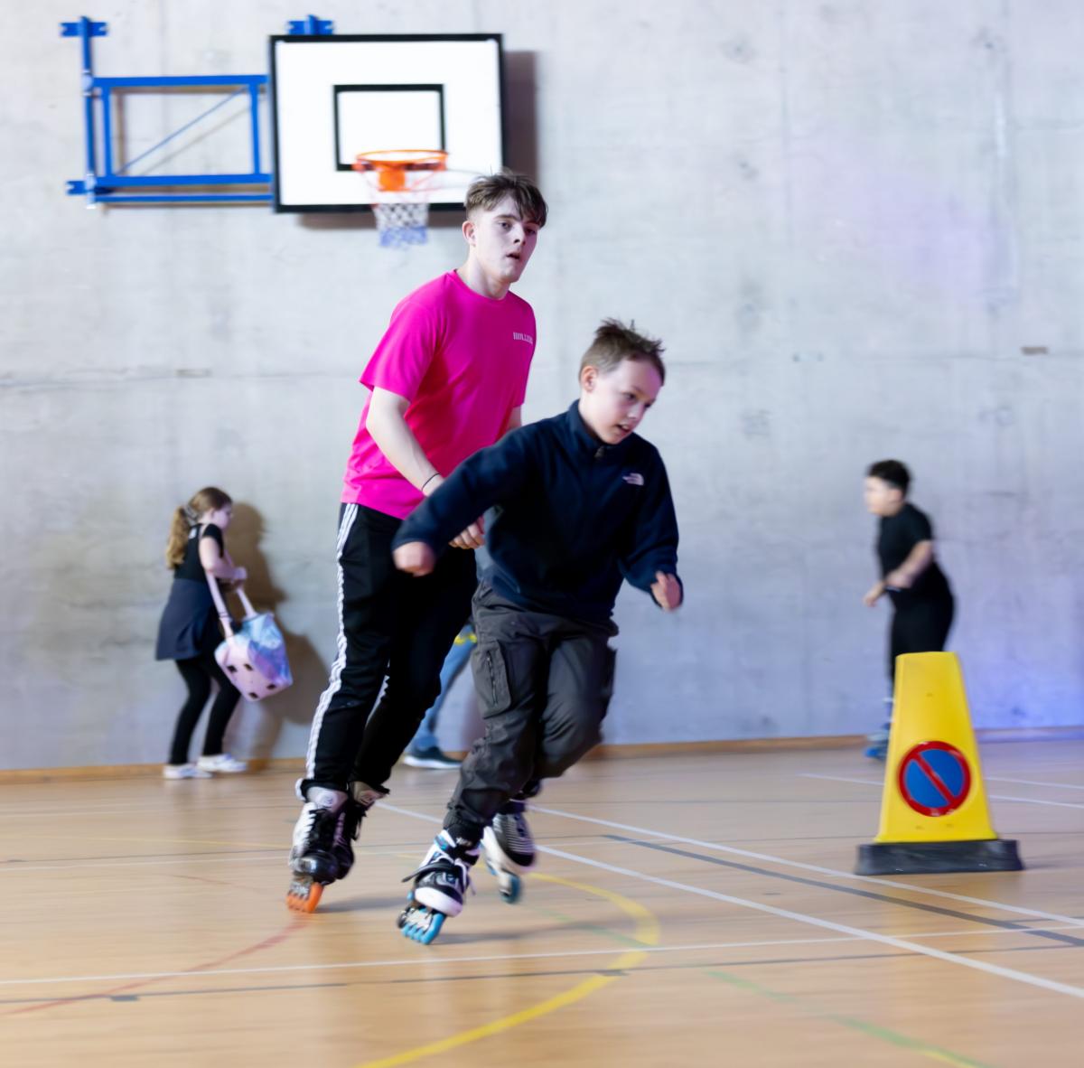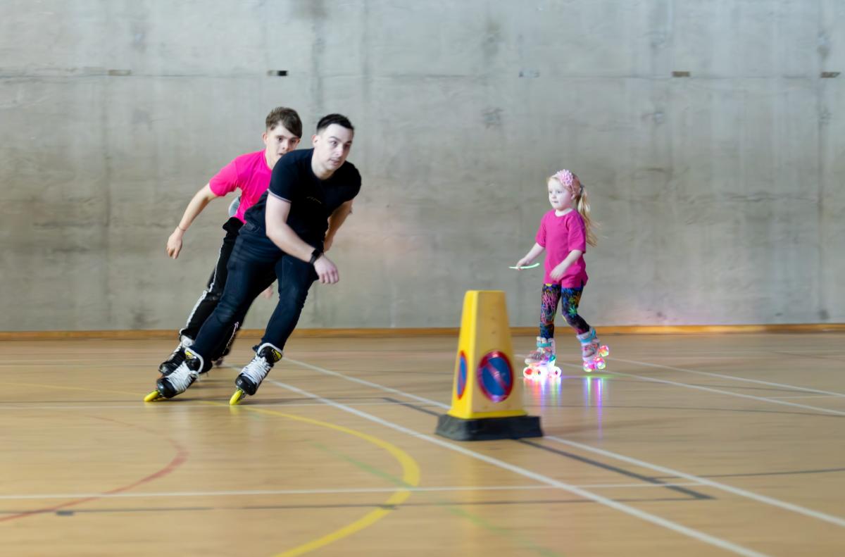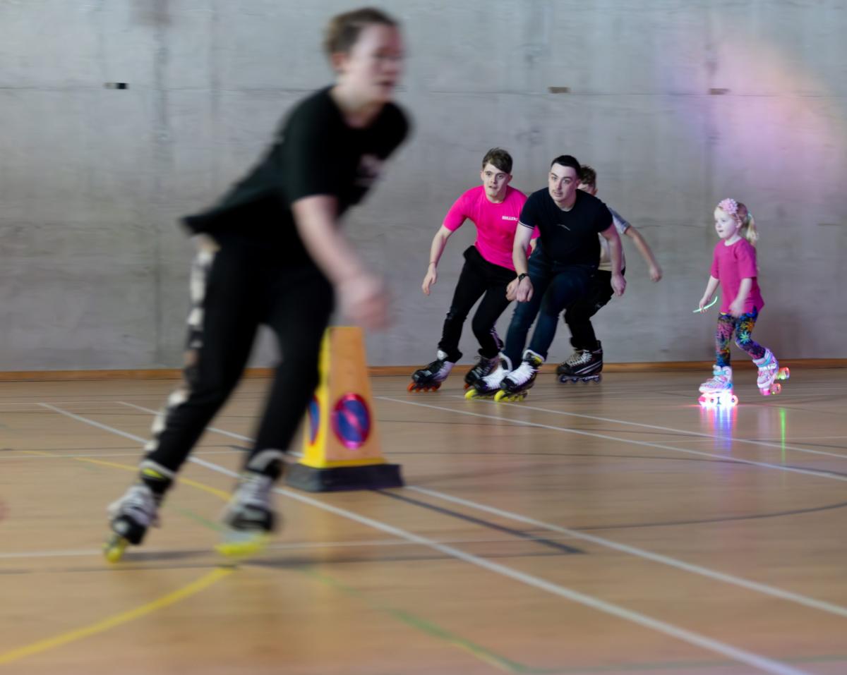 - If you have your own skates please do not enter or leave the sports hall wearing them. This is the same for hire skates. If you need to visit the toilets mid session please take your skates off before leaving the hall and put them back on when you return.